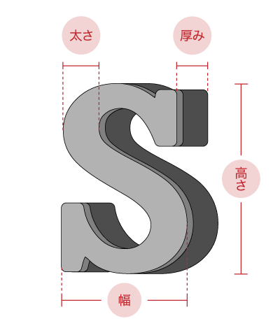 チャンネル文字の高さ・幅・太さ・厚みとは何ですか?